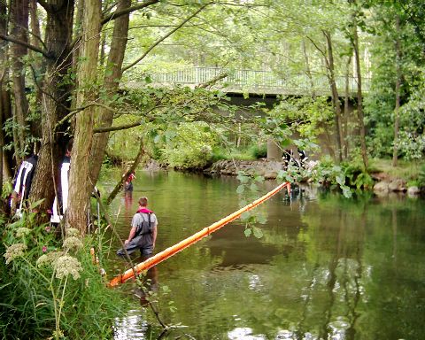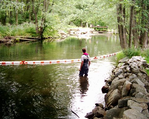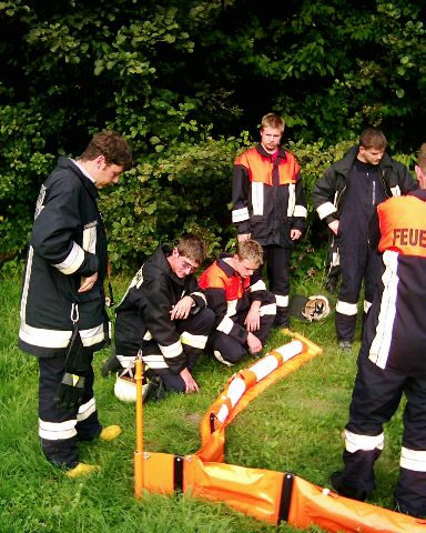 Bei der Erkundung stellten Projektleiter Bernd Hatzinger, Kdt. der FFW Hohenwarth, Josef Pritzl, und Kdt. der FFW Ansdorf-Simpering, Josef Berlinger, jedoch fest, dass eigentlich zwei Stellen für die Ölsperrmaßnahme geeignet wären. Kurzerhand entschloss man sich, aus "Stelle 13" "Stelle 13a und Stelle 13b" zu machen. Abgesperrt wurde einmal mit 15m und einmal mit 25m Ölsperrmaterial.
