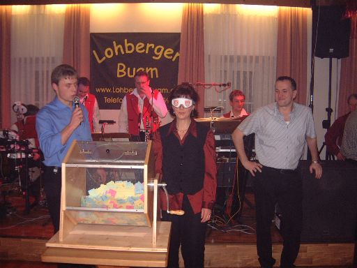 Ab 21.00 Uhr wurden auch Lose für die große Tombola mit fast 90 Preisen verkauft und um 21.30 Uhr konnte man mit der Ziehung der Preise beginnen. Unter der Aufsicht des 1. Bürgermeisters Xaver Gmach durfte die Festmutter Melitta Mühlbauer mit verdeckten Augen die Gewinner aus der großen Lostrommel ziehen.