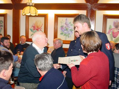 Einmalig in der Feuerwehrgeschichte war die Ehrung von Xaver Köppl. Er wurde für 70jährige Mitgliedschaft mit einer Urkunde geehrt.
