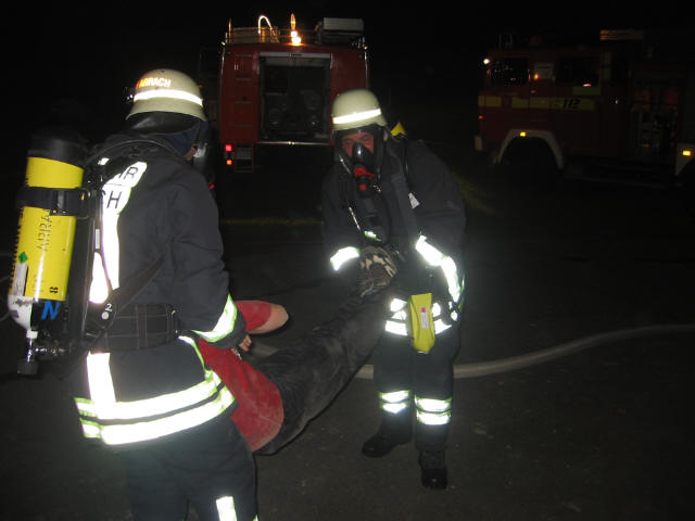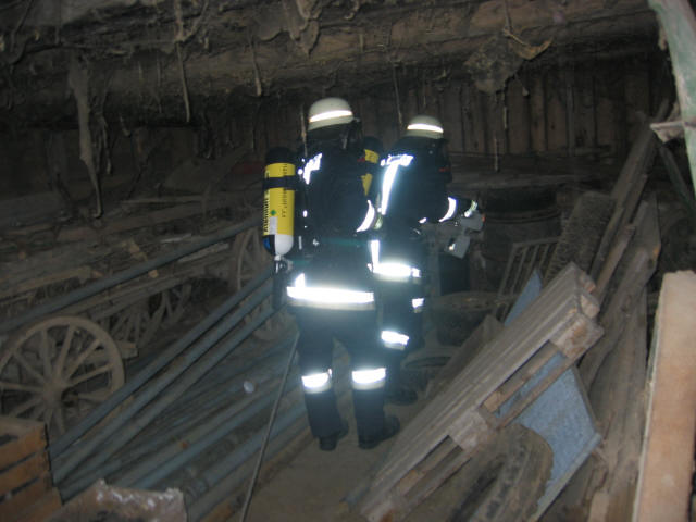 Weitere Löschwasserversorgungen wurden von den Feuerwehren Arrach, Engelshütt, Gotzendorf, Haibühl, Lam und Lohberg vom Fluss Regen her zum Brandobjekt aufgebaut, so dass insgesamt vier B-Leitungen zur Brandbekämpfung zur Verfügung standen. Unterdessen rüsteten sich mehrere Trupps der eingetroffenen Feuerwehren mit Atemschutz aus um die Kameraden der FF Hohenwarth bei der Personenrettung zu unterstützen. Hierbei zeigte sich einmal mehr, welch hohen Einsatzwert die Wärmebildkamera der FF Arrach bei der Personensuche hat.