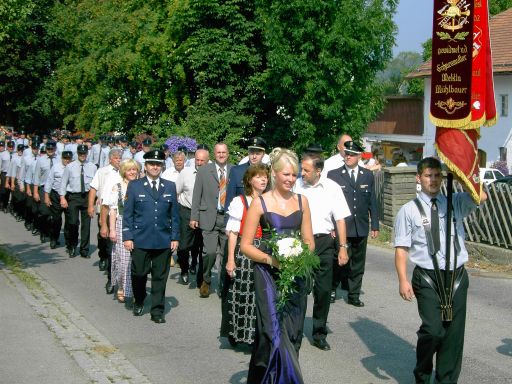 Pünktlich um 14:00 Uhr begann der Festzug, der von der Thenhoferstraße zum Bahnhof in Simpering und zurück zum Festzelt führte. Die Vereine wurden vom Spielmannszug der Feuerwehr Ansdorf-Simpering sowie der Festkapelle Hermann Kuchler begleitet. Zahlreiche Zuschauer neben der Straße ließen es sich nicht nehmen, beim Festzug mit den prachtvollen Fahnen und den Fahnenbegleiterinnen im schönsten Kleid oder Tracht dabei zu sein. Auch die Ehrengäste marschierten mit, unter ihnen auch Melitta Mühlbauer, die Festbraut vom 75-jährigen Gründungsfest 2002. Musikalische begleitet wurde der Festsonntag von der Festkapelle Hermann Kuchler und am Abend spielten das Duo "Hermann und Willi" traumhafte Klänge aus der Heimat.