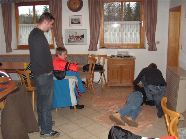 Der praktische Teil des Wissenstests bestand darin, den Zustand einer bewusstlosen Person zu erkennen und die dafür erforderlichen Erste-Hilfe-Maßnahmen, insbesondere die verschiedenen Varianten der stabilen Seitenlage, fehlerfrei zu beherrschen.