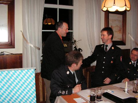 Der Kommandant ernannte anschließend noch Manuel Winter als neuen Jugendwart und dankte dem bisherigen Jugendwart Helmut Brunnhofer für seine geleistete Arbeit. Winter wünschte er für die Zukunft eine glückliche Hand im Umgang mit den Jugendlichen.