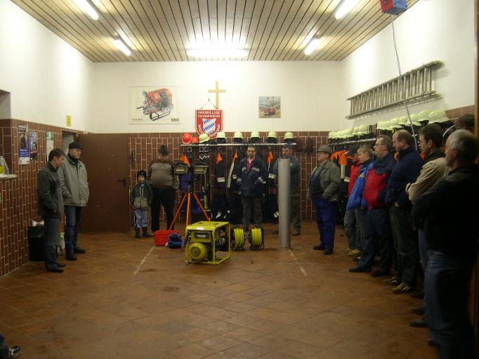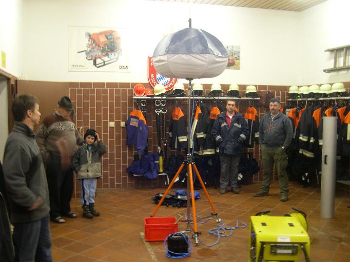 Aufgrund der Anschaffung eines neuen Beleuchtungsgerätes und eines Stromerzeugers sowie Strahlern und weiterem Zubehör hielt Kommandant Berlinger am 14.03.2008 im Feuerwehr-Gerätehaus in Simpering eine Versammlung für die aktiven Mitglieder ab.