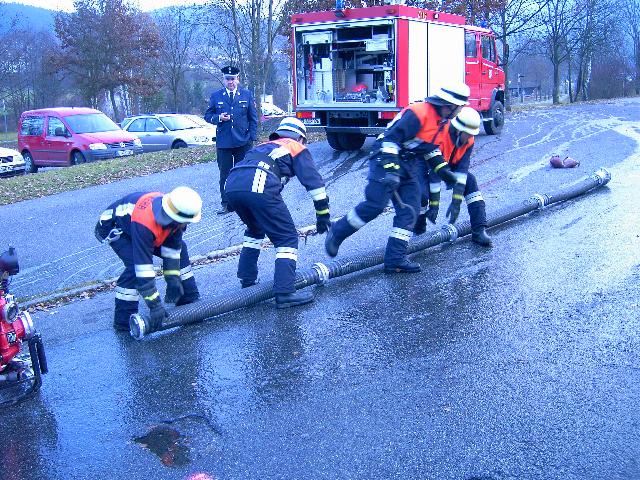 Bei der anschließenden "Trockensaugprobe" wurde die Tragkraftspritze einer Dichtigkeitsprüfung unterzogen. Bei dieser Prüfung darf ein bestimmter Ansaugdruck über einen Zeitraum von einer Minute nicht abfallen.