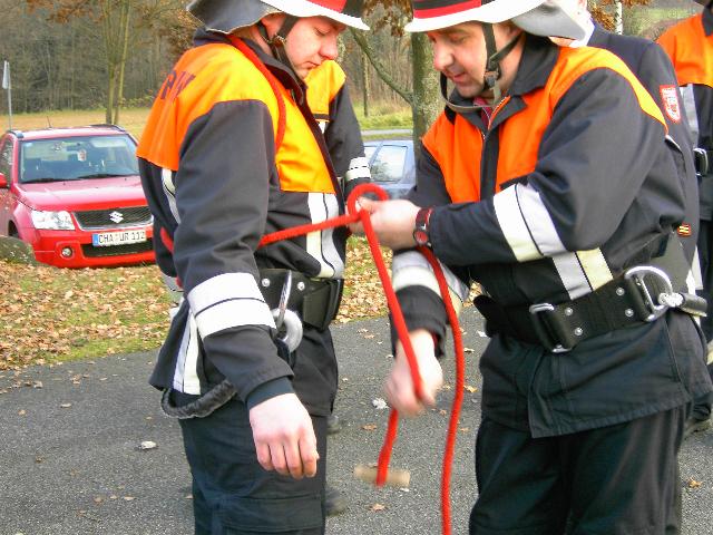 | Wassertrupp: | Halbmastwurf an Feuerwehr-Sicherheitsgurt |