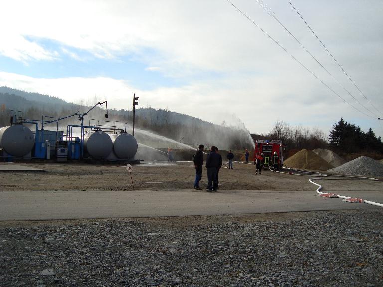Zeitweise waren 5 C-Rohre und 1 B-Rohr im Einsatz, welche zum Kühlen der nebenliegenden, und zum Ablöschen der in Brand geratenen Tanks verwendet wurden.