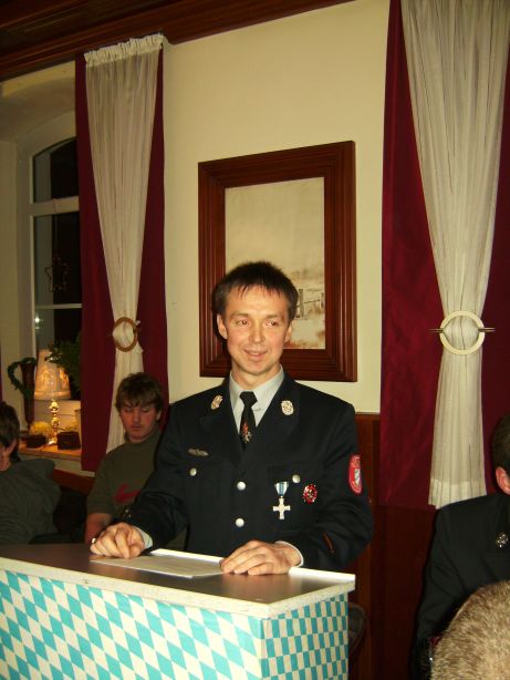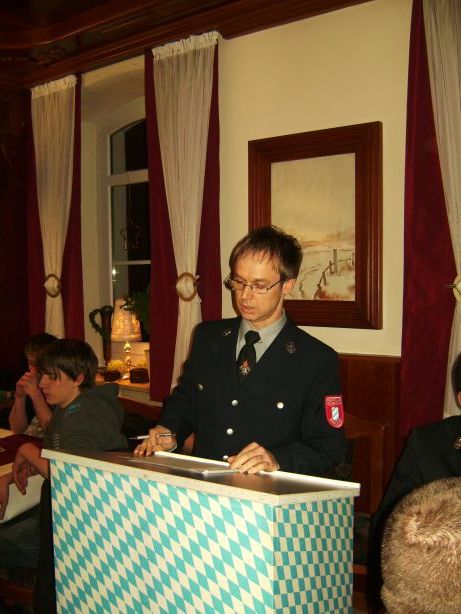 Er dankte vor allem dem Jugendwart Manuel Winter für seine ausgezeichnete Tätigkeit und dem ausscheidenden Kassier Josef Hilgarth für die jahrelange problemlose Zusammenarbeit. Anschließend gab er noch bekannt, dass mit der Aufname von Verena Winter nun die erste aktive Feuerwehrfrau ihren Dienst leistet und hofft, dass ihr noch viele folgen werden.