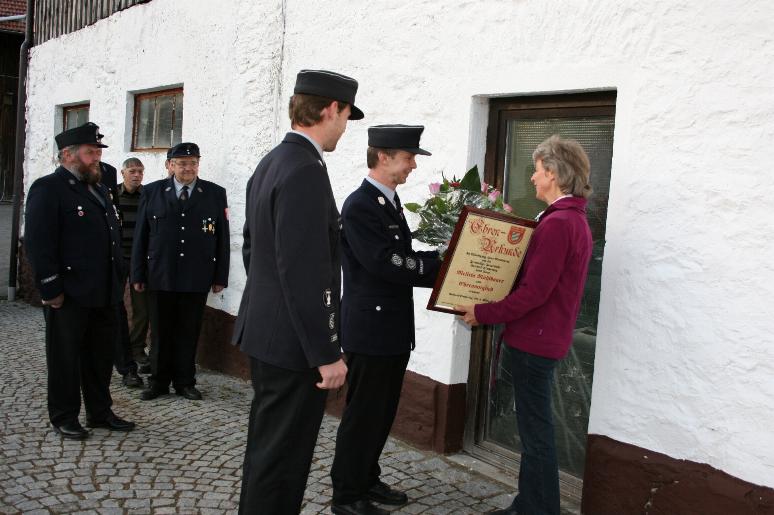 Nun bedankte sich die Feuerwehr ein paar Tage nach ihrem fünfzigsten Geburtstag mit der Ernennung zum Ehrenmitglied.