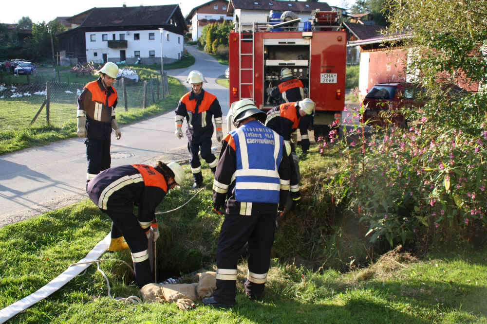 Als weitere Löschwasserentnahmestelle diente der ca. 200 m entfernte Bach bei der Staatsstraße. Mit diesem Wasser wurde die FF Hohenwarth versorgt, die einen Wasserwerfer und zwei C-Rohre im Einsatz hatte.