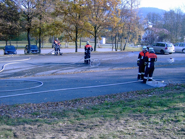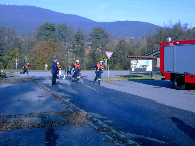 Aus den Richtlinien der Feuerwehrdienstvorschrift 3 wurde auch diesmal wieder die Variante 1, also ein Löschangriff mit Wasserentnahme aus einem Hydranten, gewählt.