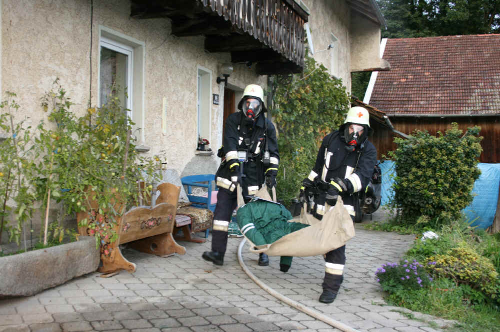 Angenommen wurde ein Wohnhausbrand im Anwesen Stöger in Ribenzing, zwei Personen seien noch im Gebäude vermisst, lautete die Alarmdurchsage, mit der Kreisbrandmeister Josef Pritzl über Funk seine Feuerwehren zur Übung rief.