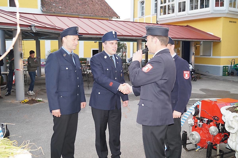 Gleichzeitig stellten sich die Kameraden der FF Ansdorf-Simpering im Feuerwehrhaus im Simpering auf und marschierten ebenfalls zur Kapelle, angeführt vom vereinseigenen Spielmannszug unter der Leitung von Kommandant Josef Berlinger.