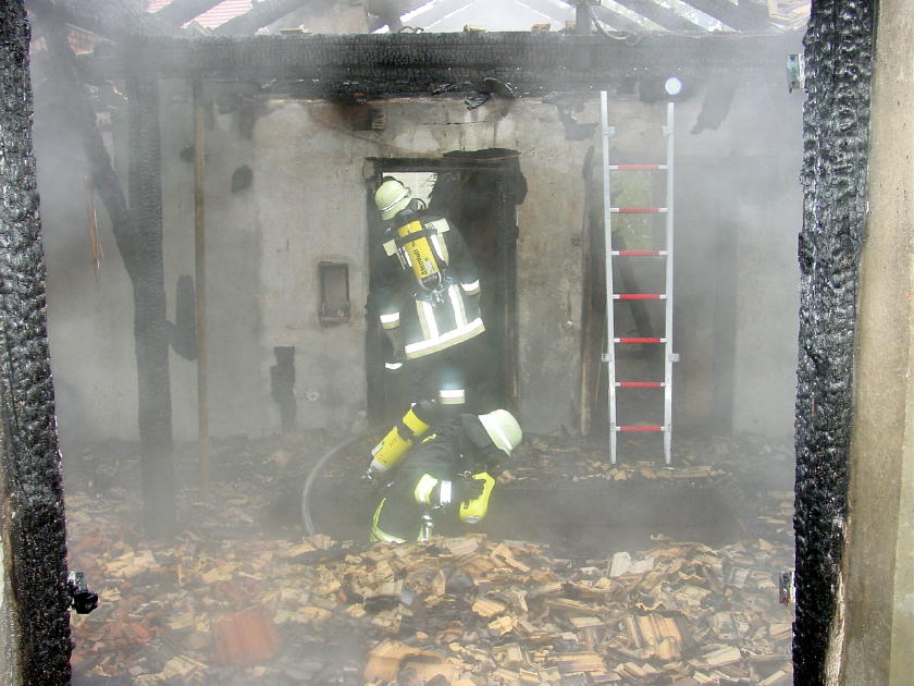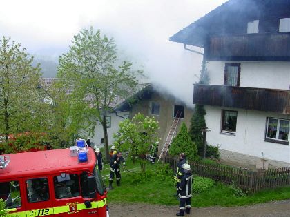 Nach ca. 1/2 Stunde konnte das Feuer unter Kontrolle gebracht werden und nur wenige Minuten später konnte "Feuer aus!" gemeldet werden. gegen 09.00 Uhr war der Einsatz für den Großteil der Feuerwehren beendet. Die FF Engelshütt und Lam blieben bis zum Eintreffen der Kriminalpolizeit Regensburg noch am Brandobjekt, da die Brandursache bisher noch ungeklärt ist.