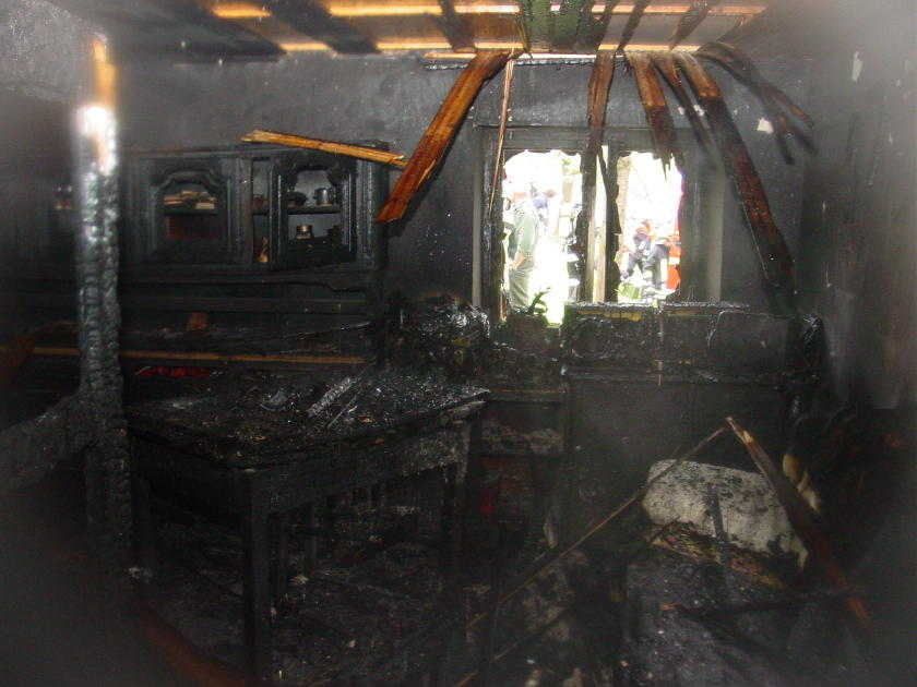Die Feuerwehrmänner kämpften sich über das Erdgeschoss zum Dachgeschoss vor, das ebenfalls vollständig ausgebrannt war.