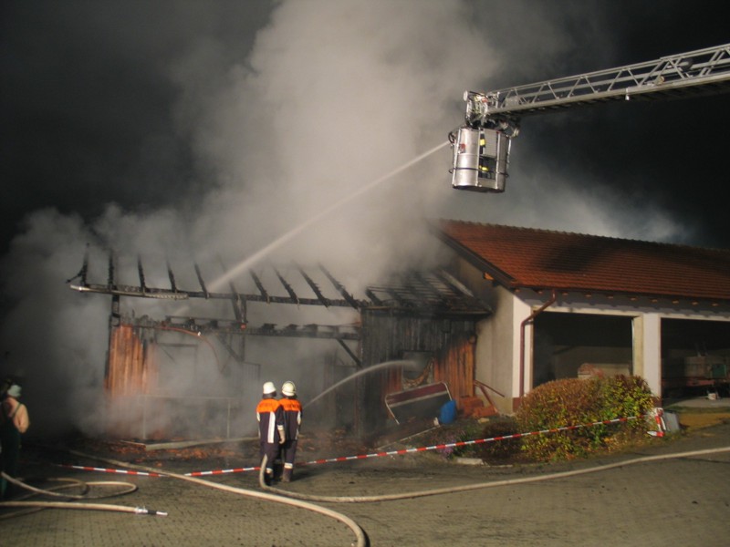 Am Mittwoch-Morgen, 17. Oktober 2007 gegen 2.15 Uhr, geriet eine ca. 6 x 14 m große Scheune am Ortseingang von Ottenzell, Gemeinde Arrach, in Brand. Der Bewohner eines direkt daneben stehenden Wohnhauses bemerkte den Brand und drückte den Druckknopfmelder der Sirene, welche sich auf dem Gasthaus des Brandleiders befand. KBI Michael Stahl, der den Brand bereits von zu Hause aus sehen konnte, stellte in einer ersten Lagemeldung einen Vollbrand fest.