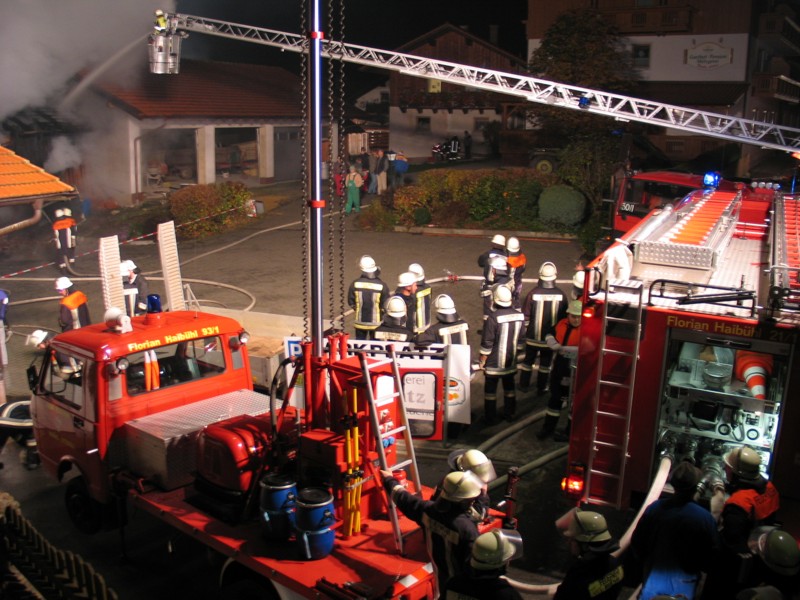 Die mit Alarmstufe 2 alarmierte Ortswehr Haibühl-Ottenzell, als erste am Brandort, begann mit dem Tanklöschfahrzeug TLF 16/25 sofort den Löschangriff, während das TSF den Aufbau einer Wasserversorgung vorbereitete. Die nachrückenden Wehren aus Arrach, Engelshütt und Lam bauten Wiederstandlinien zu den Nachbargebäuden auf und verhinderten so ein Übergreifen der Flammen auf ein Wohnhaus und eine größere Maschinenhalle.