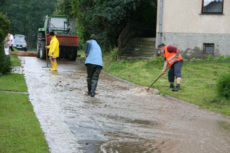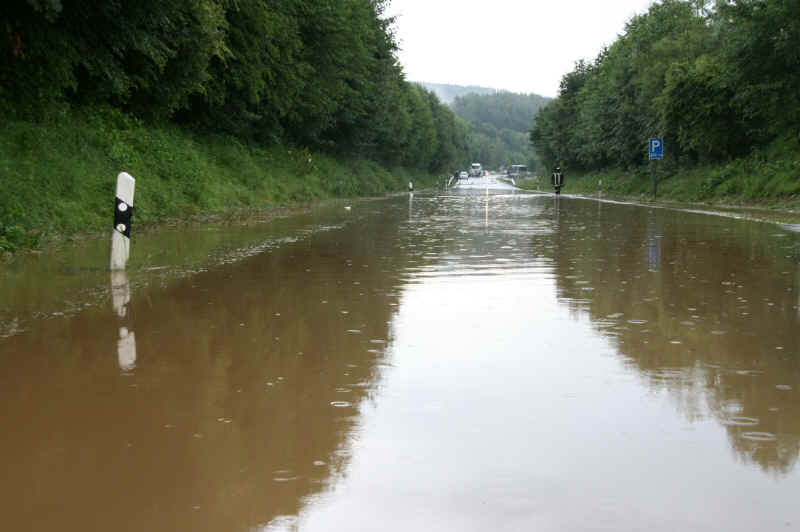 Dies hatte natürlich zur Folge, dass die Straßengullys, Gräben und Bäche die Wassermassen nicht mehr aufnehmen konnten und das Wasser bisher nicht bekannte Wege nahm. So wurden auch zahlreiche Straßen überflutet, die Staatsstraße 2138 bei Hohenwarth zeitweise gänzlich gesperrt werden, da kein Durchkommen mehr möglich war.