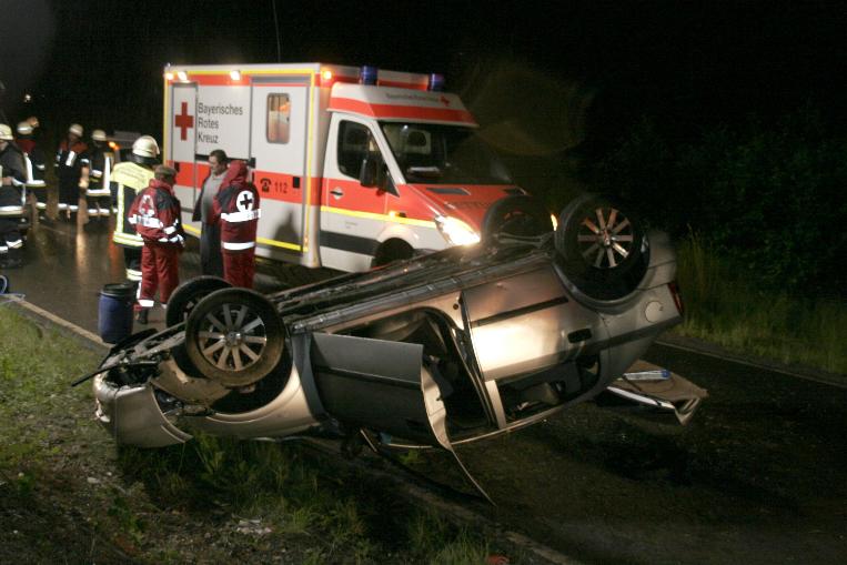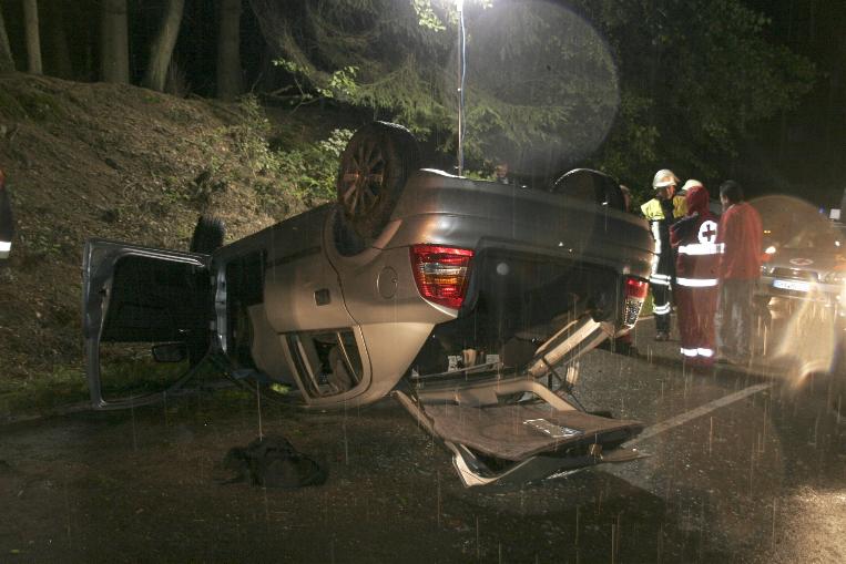 Der Pkw wurde auf die Fahrbahn zurückgeschleudert, überschlug sich und kam schließlich auf dem Dach zum Liegen.