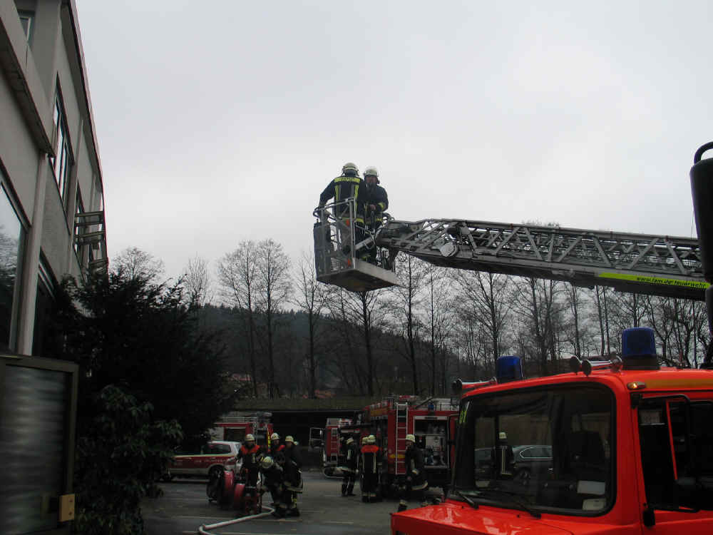 Die Atemschutzgeräteträgertrupps kämpften sich nach und nach zum Brandherd in der Lackiererei vor und schafften eine Abluftöffnung. Durch die erst kürzlich beschafften Wärmebildkameras konnte das Feuer bei den massiv eingeschränkten Sichtverhältnissen sehr schnell lokalisiert und gelöscht werden.