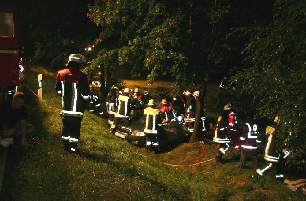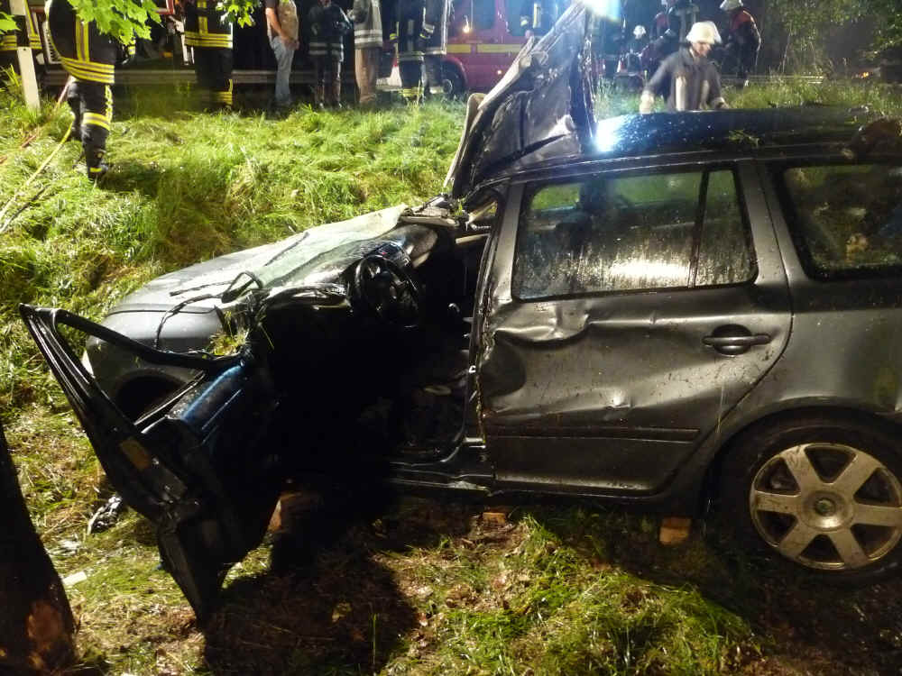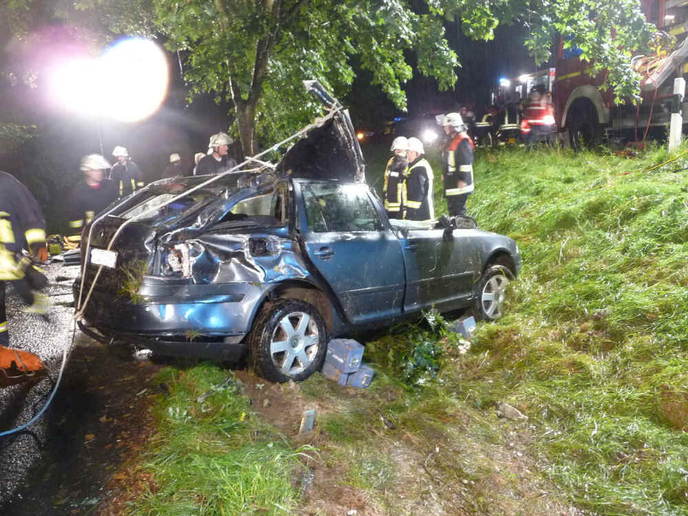 Am 31. August um 4:36 Uhr wurden die Feuerwehren Arrach, Haibühl, Lam und der Rettungsdienst zu einem Verkehrsunfall mit eingeklemmter Person auf der Staatsstraße zwischen Vogelwiese und Großmühle alarmiert. Auf dem Weg zur Arbeitsstelle war aus noch ungeklärter Ursache ein Mann aus der Gemeinde Rittsteig auf Höhe des Eckleshof von der Fahrbahn abgekommen. Das Fahrzeug schleuderte zuerst gegen einen Baum, drehte sich dann um die eigene Achse und blieb auf der Fahrerseite liegen, die Frontscheibe an einem Baum.
