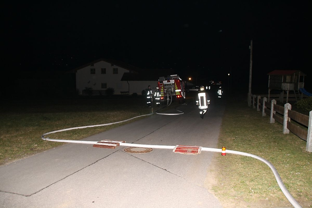 Um bei einer Brandausweitung auf den gesamten Dachstuhl gerüstet zu sein wurde von den Feuerwehren Engelshütt, Ansdorf-Simpering, dem TSF aus Haibühl-Ottenzell und dem Versorgungs-LKW aus Arrach eine ca. 300 m lange B-Leitung vom Regen aufgebaut.