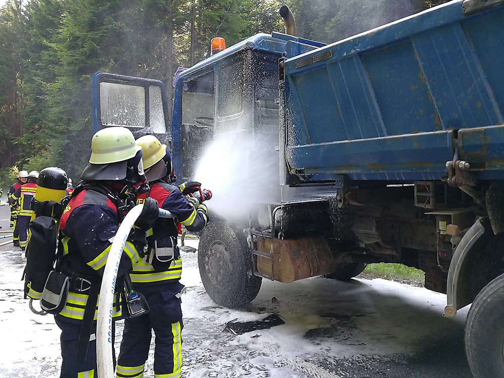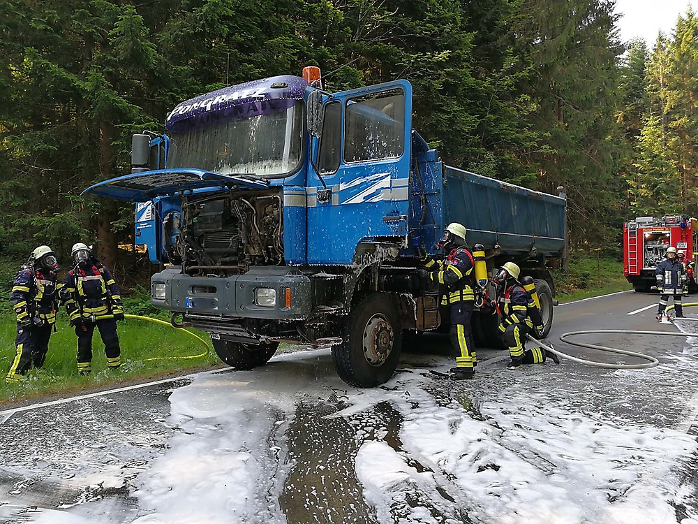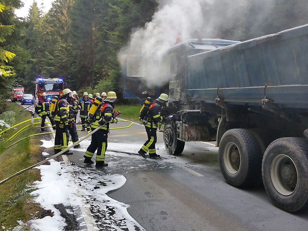 Am Mittwoch, den 21.06.2017, um kurz vor 09.00 Uhr wurden zahlreiche Feuerwehren aus dem KBM-Bereich Lam zu einem Einsatz an die die St2326 zwischen Arrach und Eck gerufen. Auf der Überfahrt zwischen Arnbruck und Arrach geriet der Motor eines Lastkraftwagens eines Bauunternehmens aus Neukirchen b. Hl. Blut in Brand.