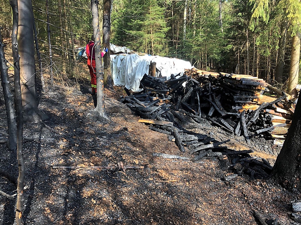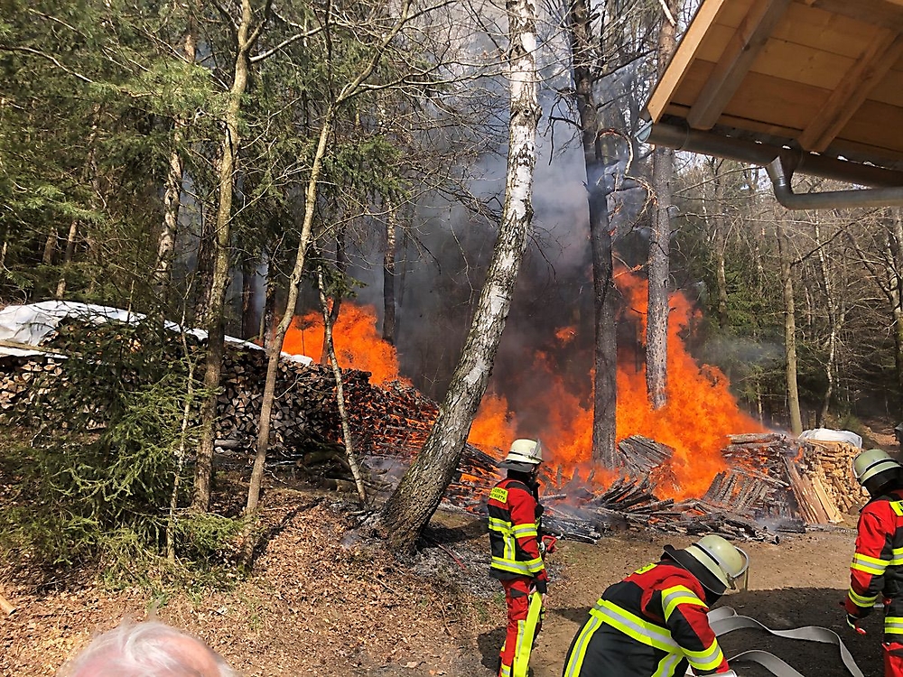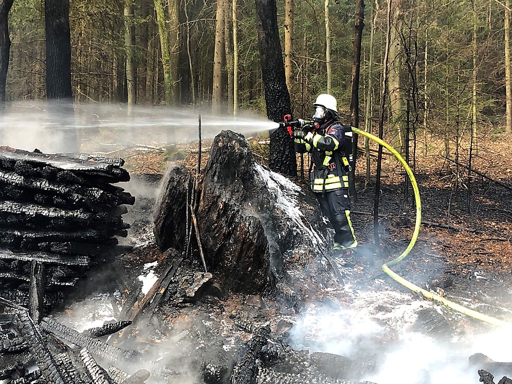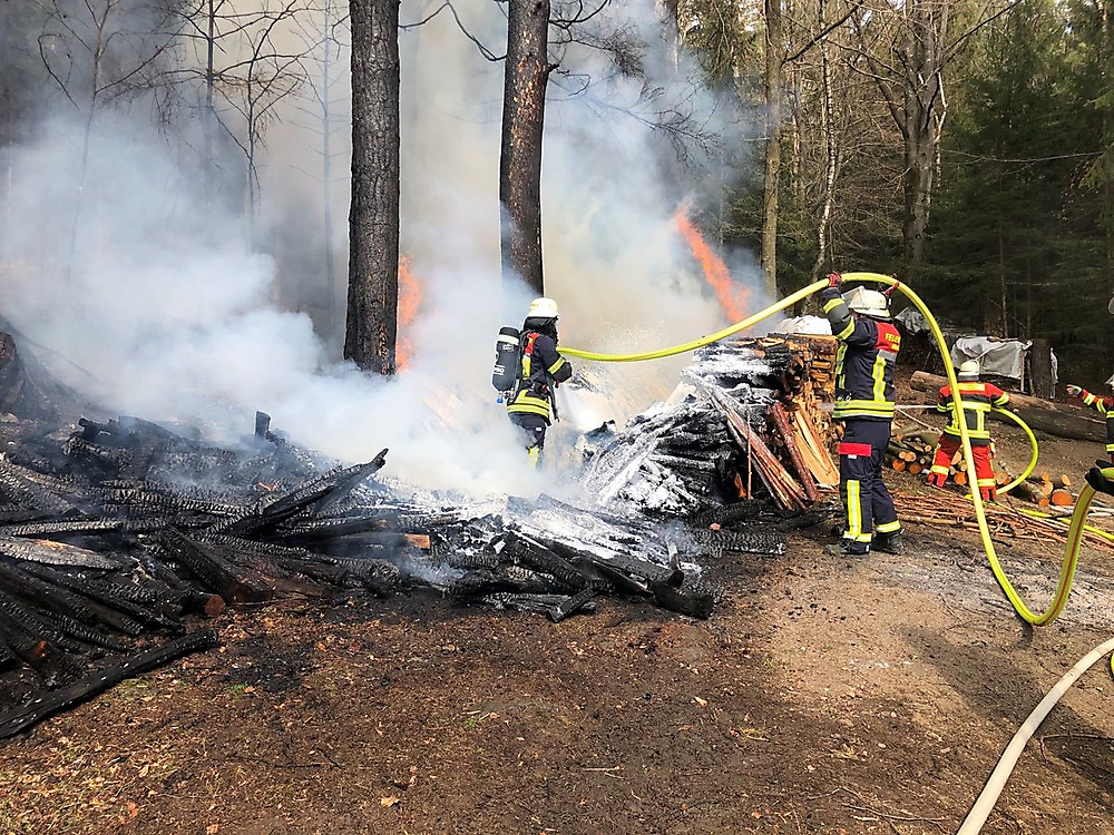 Nachdem das Brandgut - es handelte sich um aufgerichtete Holzscheite - durch den Brandleider in einer seiner angrenzenden Wiesen verteilt wurde, wurde dieses sowie die Bodenflächen am Brandort nochmals intensiv mit Wasser getränkt. Die Feuerwehr Ansdorf-Simpering führte im Laufe des Tages noch mehrmals Temperaturmessungen durch.