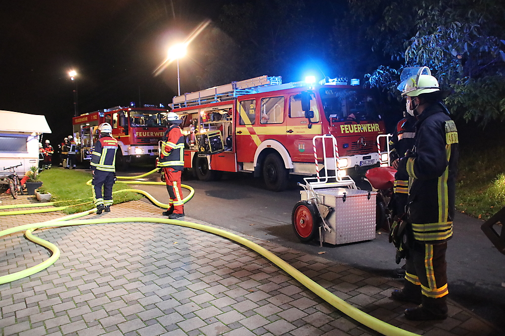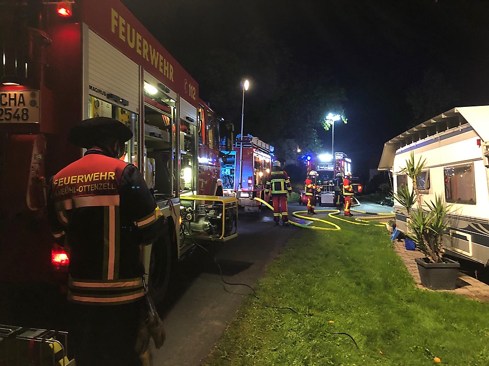 Die Einsatzstelle wurde zudem großflächig ausgeleuchtet. „Durch den Zusatz von Schaummittel wurde nur minimal Wasser benötigt um die Flammen abzulöschen“, so Michael Stahl auf den Löscheingriff eingehend. Vom Notarzt sowie der Besatzung zweier Rettungswagen wurden die fünf Hausbewohner ambulant behandelt, wie stellvertretender Rettungsdienstleiter Tobias Muhr an der Einsatzstelle über die Tätigkeiten des BRK informierte. Die Ermittlungen zur Brandursache nahmen die Beamten der Polizeiinspektion Bad Kötzting auf.