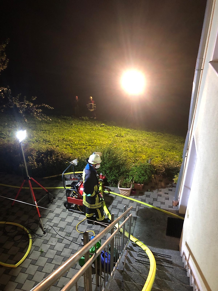 Der schrille Ton der Rauchmelder ließ an diesem Dienstagabend gegen 23 Uhr die Bewohner des an einem Wiesenhang stehenden Gebäudes aufschrecken. Nach ersten Löschversuchen und dem zeitgleichen Alarmieren der Feuerwehr verließen die fünf Bewohner aufgrund des enormen Rauchaustrittes das Gebäude. Dem Meldebild zu Folge alarmierte die Leitstelle Regensburg die Feuerwehren aus Hohenwarth, Arrach, Haibühl, Gotzendorf, Ansdorf-Simpering und Lam zusammen mit dem Rettungsdienst. Die ersten eintreffende Feuerwehrkräfte konnte unter schwerem Atemschutz den Brand im Heizkeller löschen. Zugleich wurden die Kellerräume mit Drucklüfter belüftet, um so den Brandrauch aus dem Gebäude zu schaffen.